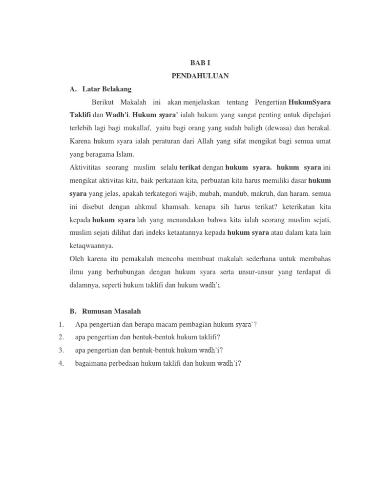 Hukum taklifi dan hukum wadh'i pdf. Ilmu Fiqih dan Ushul Fiqh. 2014-12-13 Dalam hukum taklifi terkandung tuntutan untuk melaksanakan meninggalkan atau memilih antara melakukan dan meninggalkan. Wadhi Lengkap Islam sangat mementingkan hukum karena hukum dalam Islam adalah suatu syariat yang berarti aturan yang telah Allah adakan untuk seluruh hambaNya yang dibawakan oleh Nabi Muhammad Saw baik itu hukum yang berkaitan dengan aqidah kepercayaan ataupun hukum yang berkaitan dengan amaliyah.